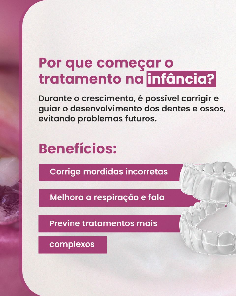 Iniciar o tratamento ainda na infância ajuda a guiar o crescimento dos dentes e ossos, evitando complicações mais sérias. Mas nunca é tarde! Os adultos também se beneficiam, conquistando um sorriso mais harmônico e uma melhor qualidade de vida.